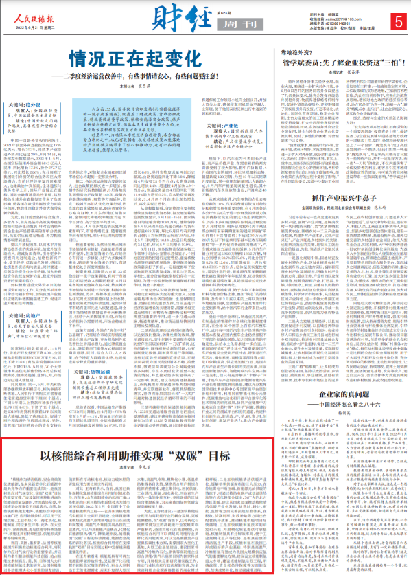 《人民政协报》:以核能综合利用助推实现“双碳”目标